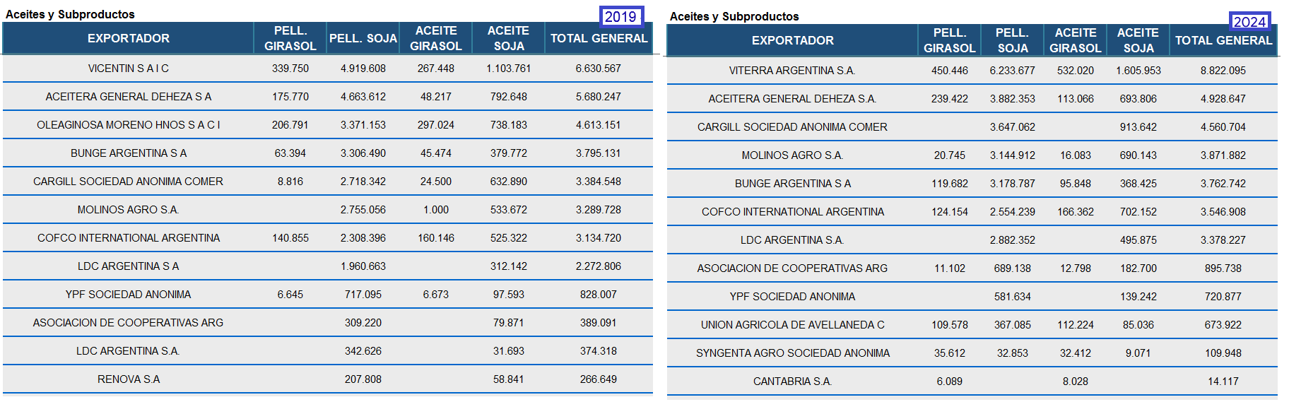 Eso permitió diversificar la matriz comercial y exportadora argentina, lo que se evidencia con el ingreso al ranking de exportadores oleaginosos de Unión Agrícola de Avellaneda y el crecimiento de la participación de muchos otros actores.