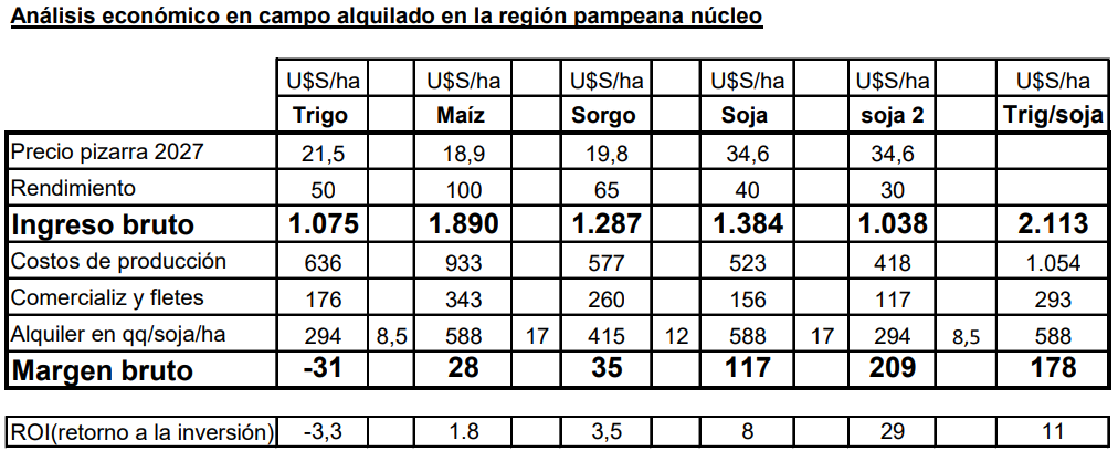 Si tenés pensado sembrar trigo en campo alquilado en zona núcleo, quizá vayas a pérdida: Un informe de la Rural de Rosario así lo refleja